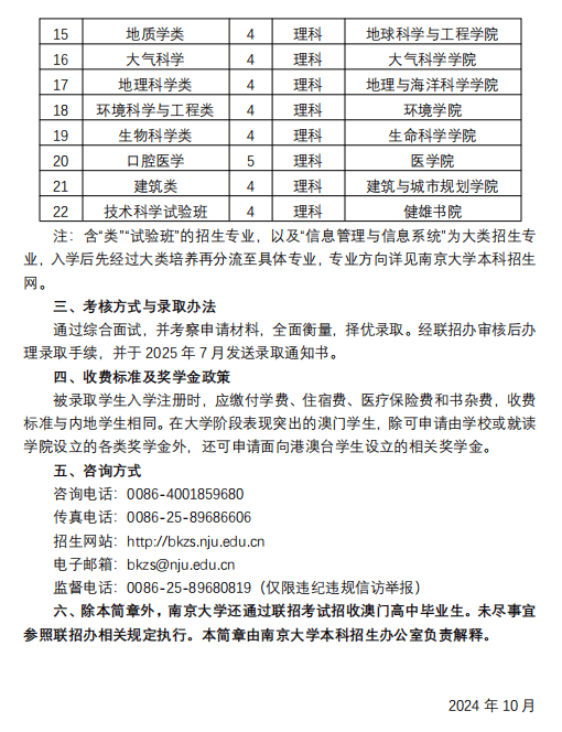 南京大学2025年招收澳门地区保送生简章